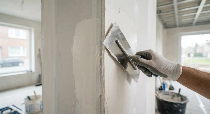 Muren en plafonds perfect gladgestreken, helemaal klaar om te schilderen of te behangen. Strak en naadloos.